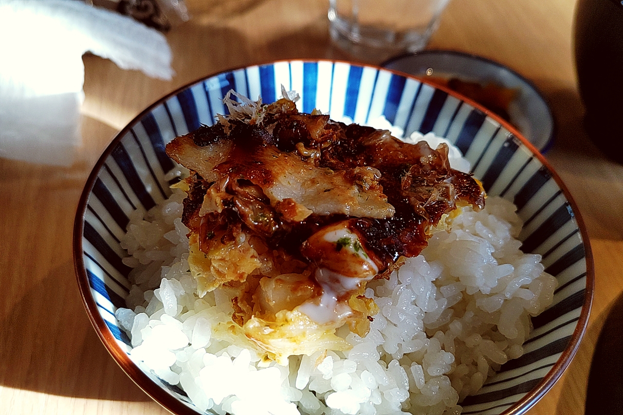 お好み焼はご飯のおかず派としてはご飯と一緒にかき込むのが至高なのです!(^^)v