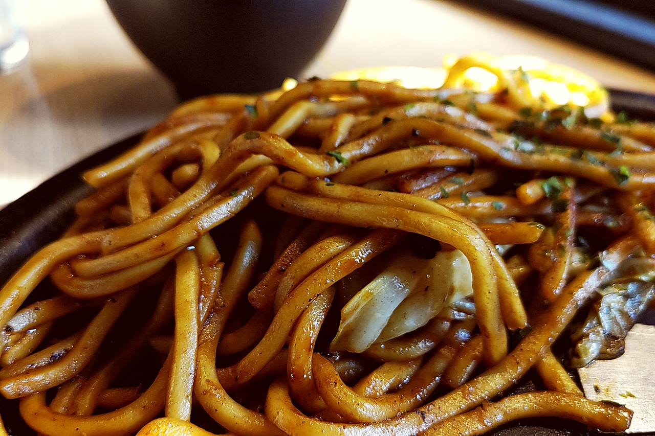 焼きそばはもっちり太麺!