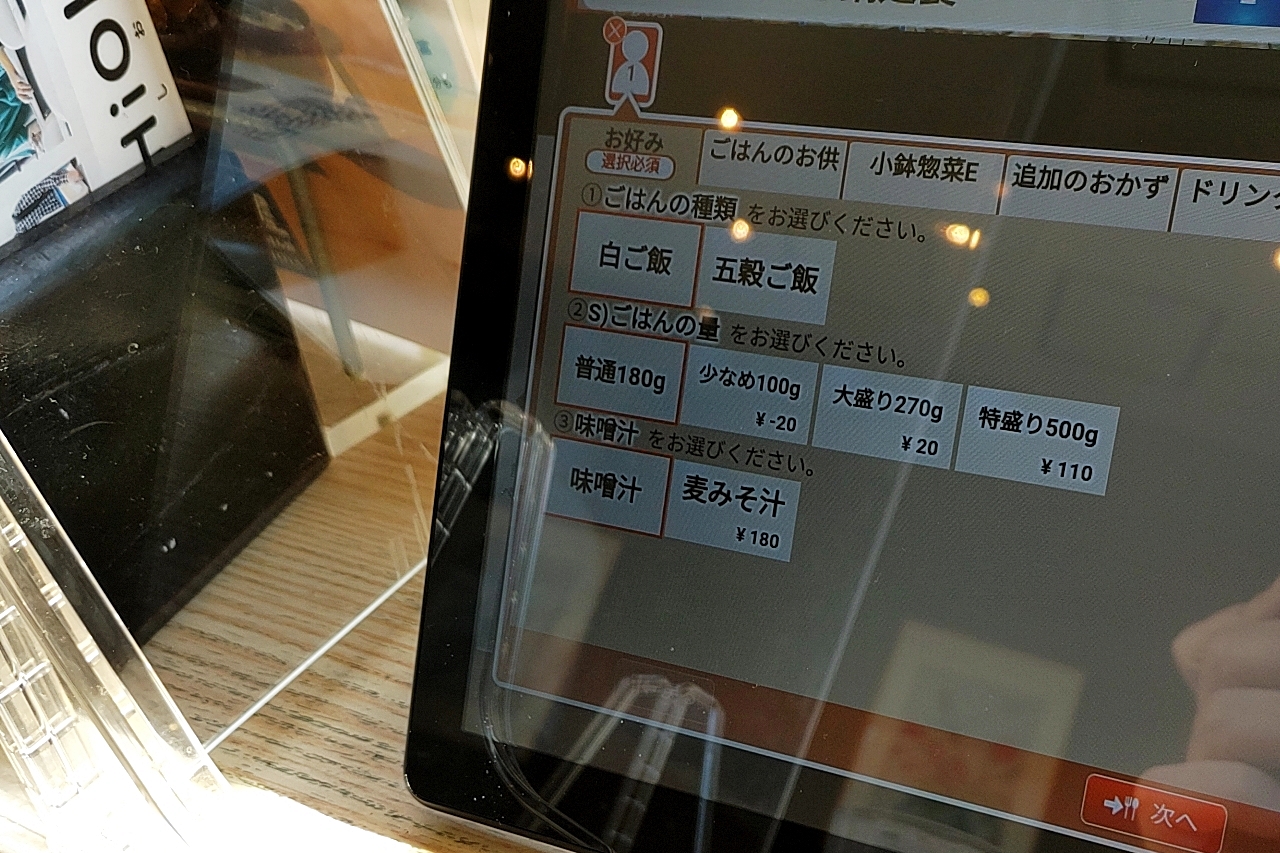 以前まで大盛り無料だったご飯が、大盛り+20円になっていました。(T_T)