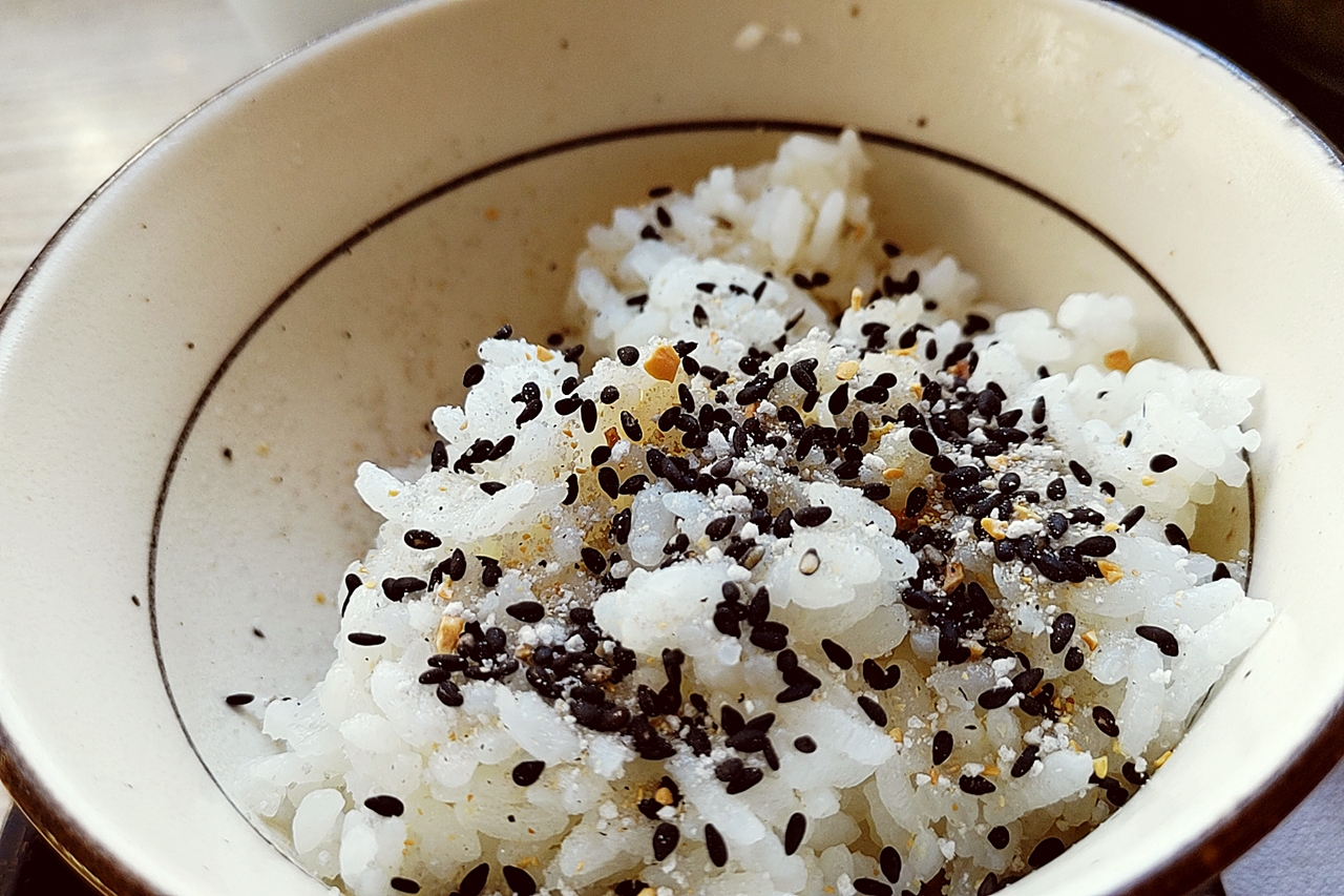 個人的な好みからすると、ごま塩は塩辛いので胡麻を置いて欲しいところ。