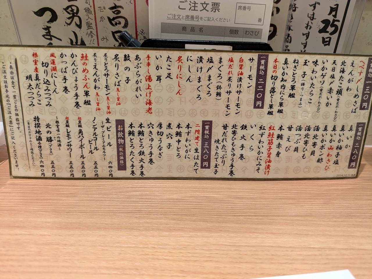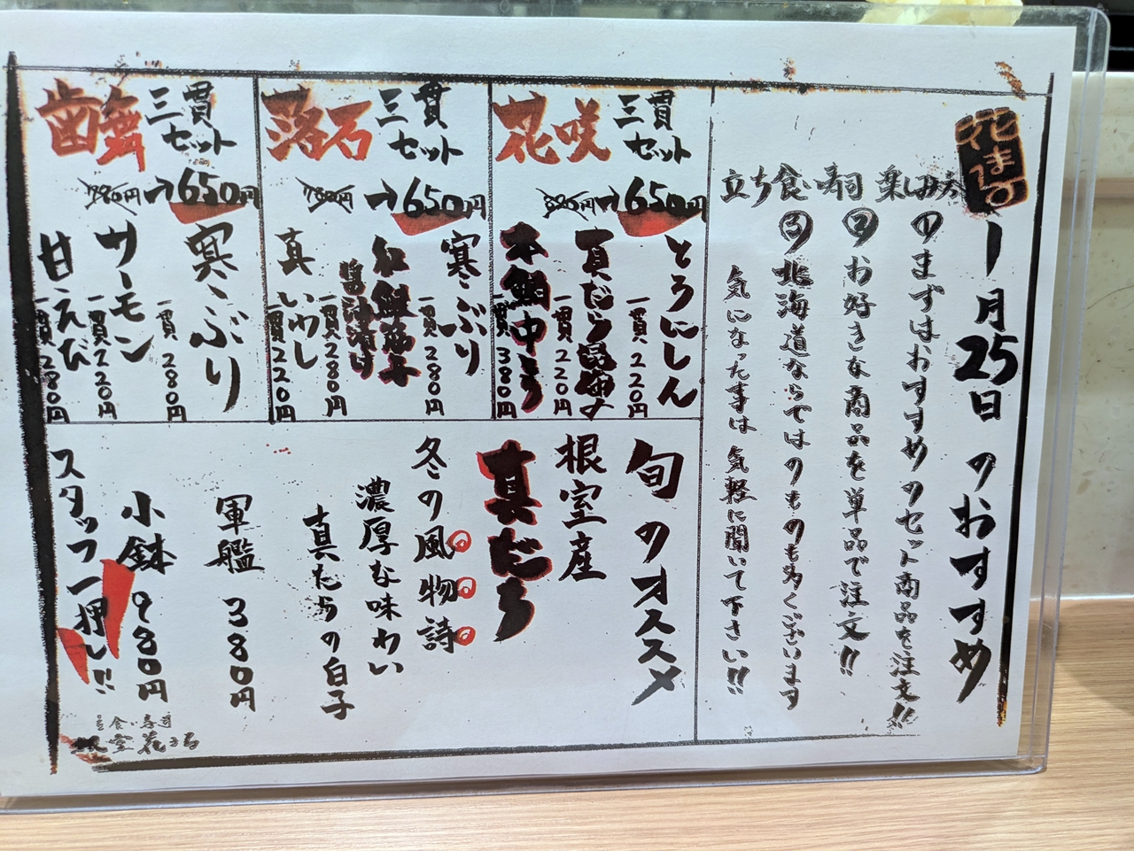 アジなら多少美味しくないアジでも好きなので、光りものはアジから入ることが多いのですが、こちらのメニューにアジはありませんでした。根室でアジは獲れないのかな?