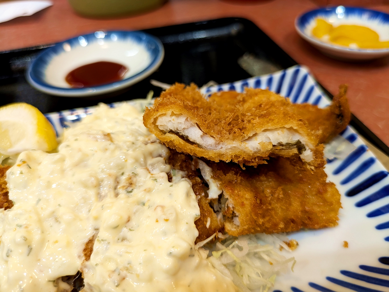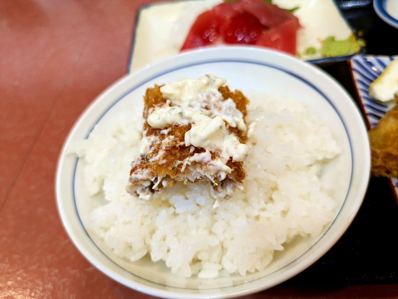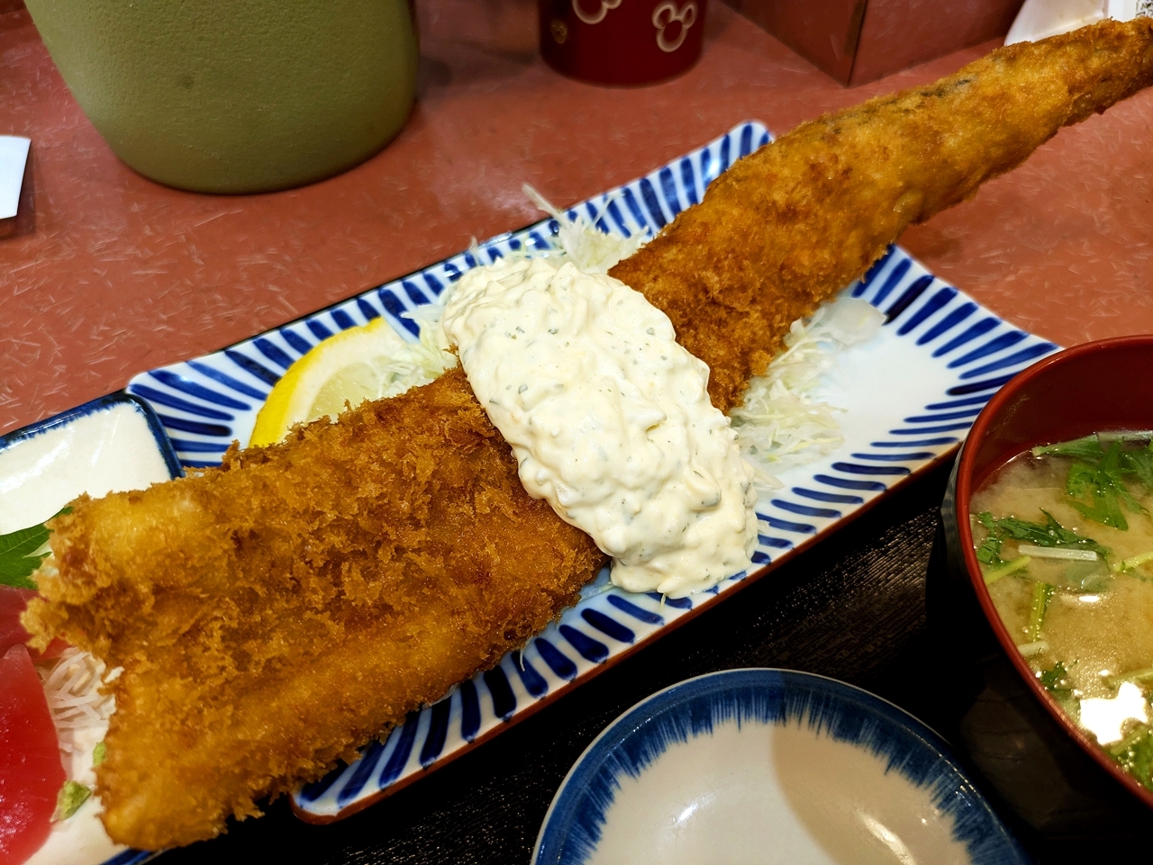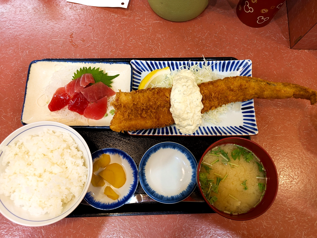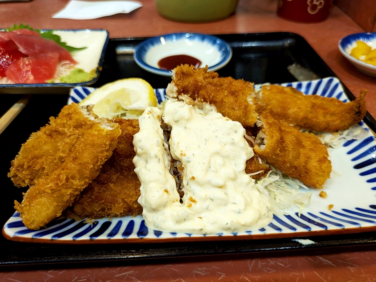 本日の注文は一本あなごフライ定食まぐろさしみ付!