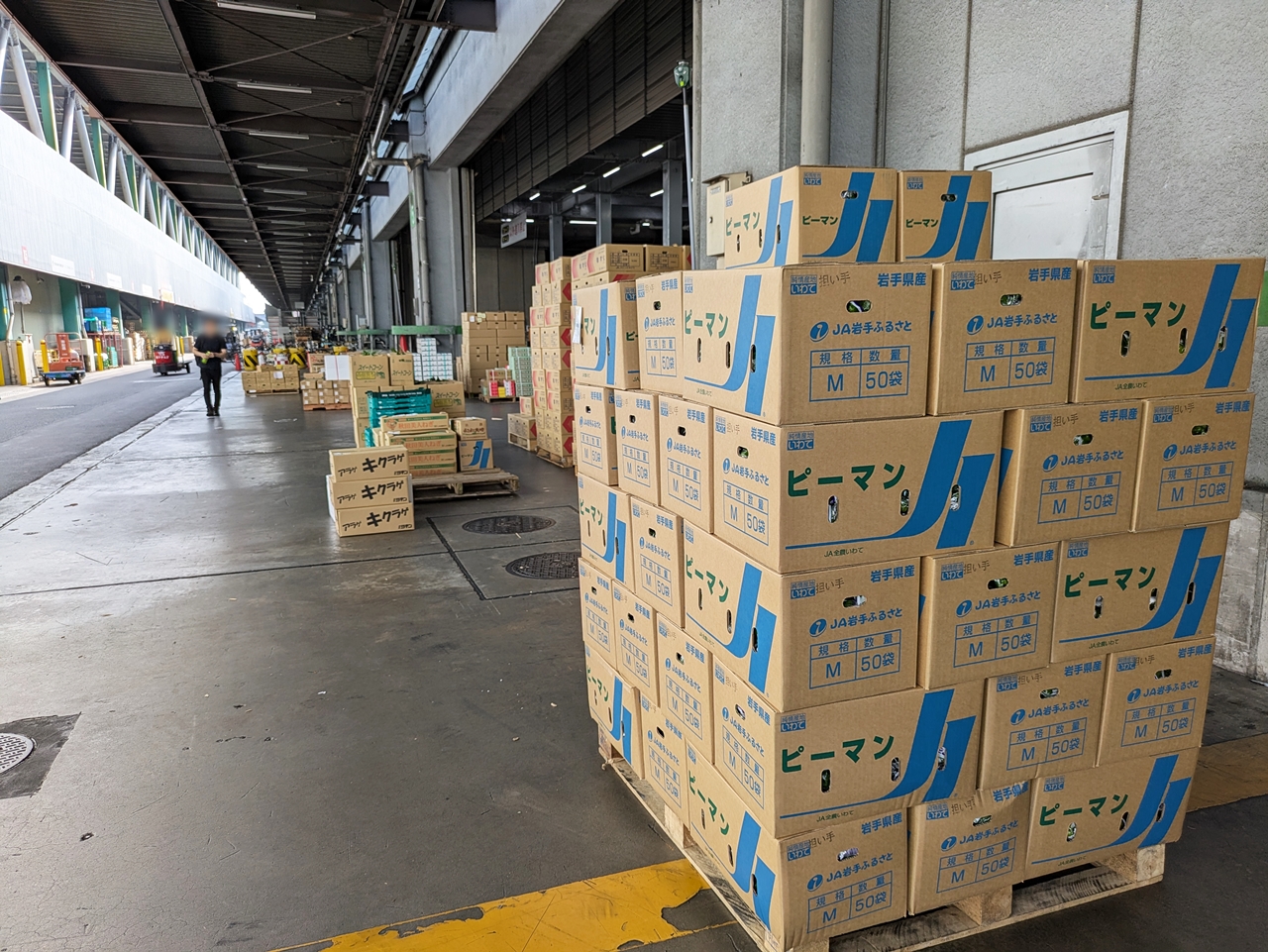 山積みのピーマンの箱を横目に向かった先は、、、