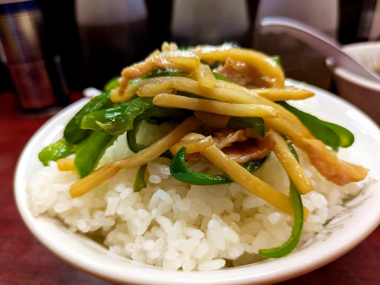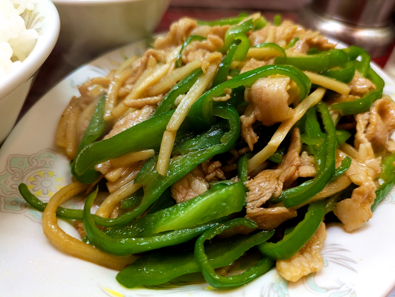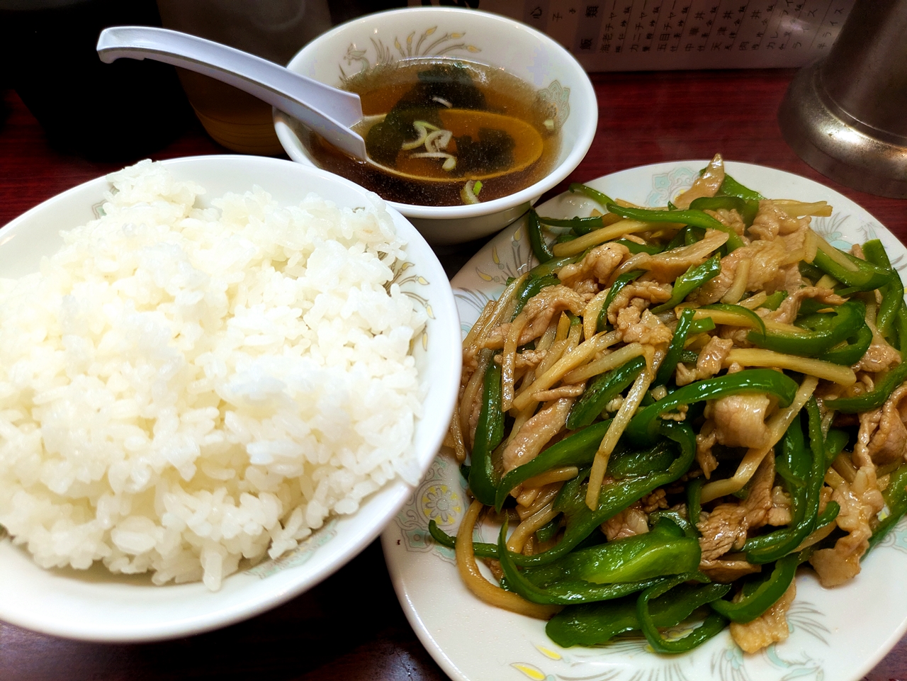 「青椒肉絲下さい」っと言うと「ピーマンですか?」っと聞き返されるので注意です。(^_^;