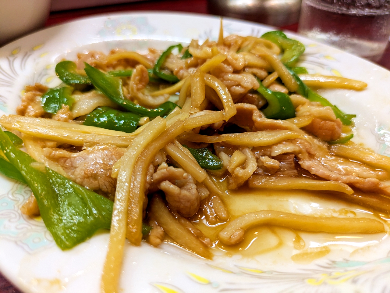 豚肉、ピーマン、タケノコの油炒め。
